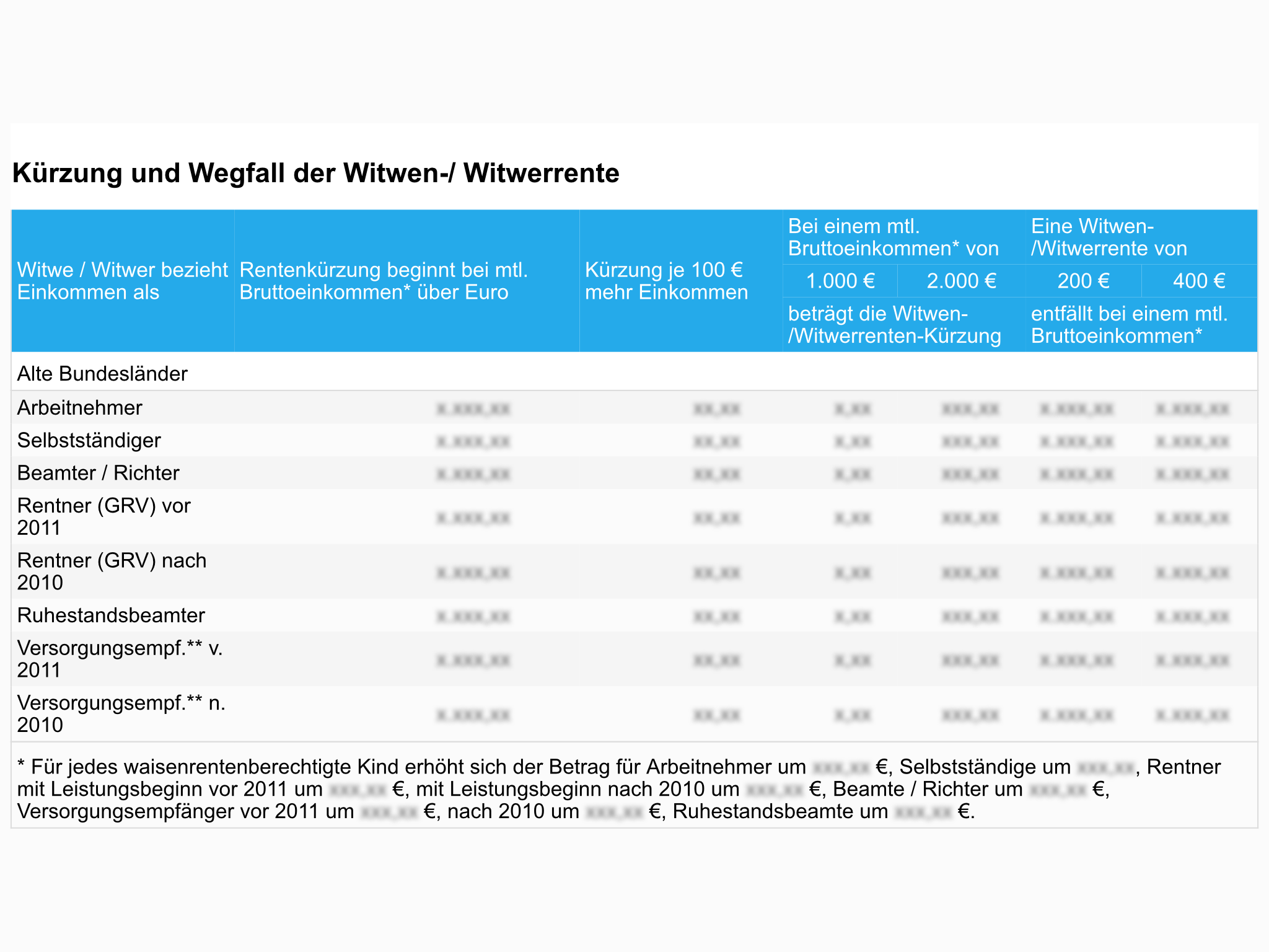 - Kürzung und Wegfall der Witwen-/ Witwerrente
